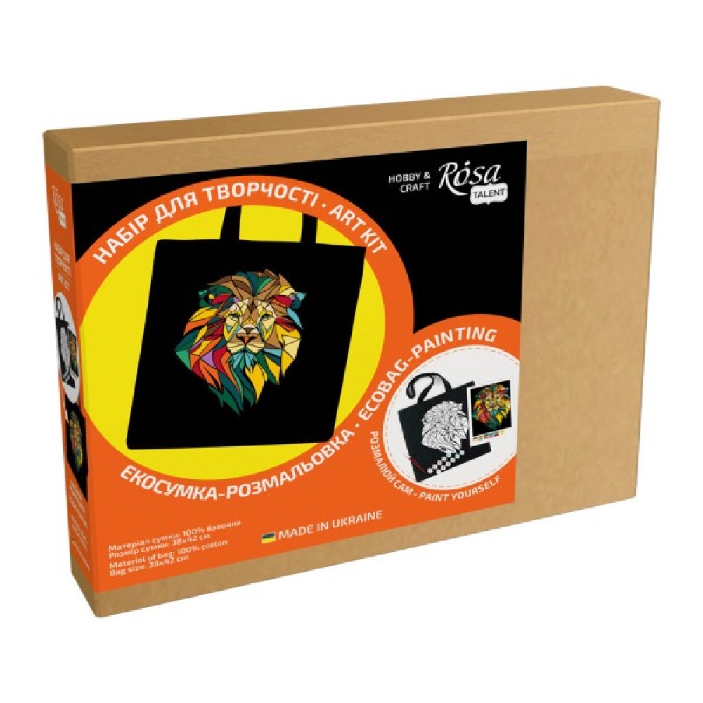Набір, творчості, Rosa, екосумкарозмальовка, чорна, Неоновий, лев, 38х42см, 4823098539759