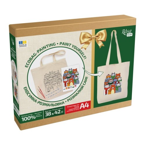 Екосумка ROSA Talent– виготовлена зі 100% бавовняної тканини. Щільний якісний матеріал та надійна фіксація ручок дозволяє витримувати навантаження вагою до 15 кг. Розпис екосумки ROSA Talent - надзвичайно захоплюючий та водночас легкий процес, адже контури малюнку вже нанесені на основу. Розписана власноруч сумка стане яскравим стильним та практичним аксесуаром, що доповнить щоденний образ!