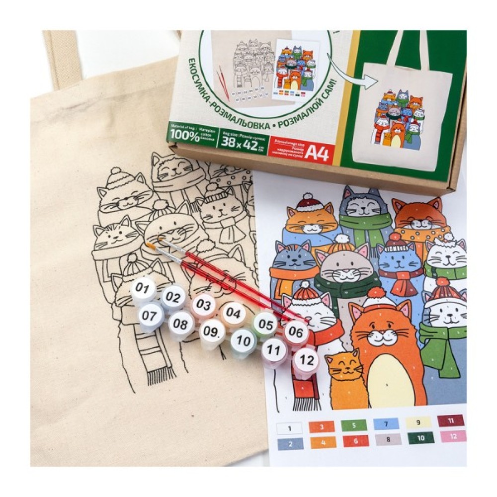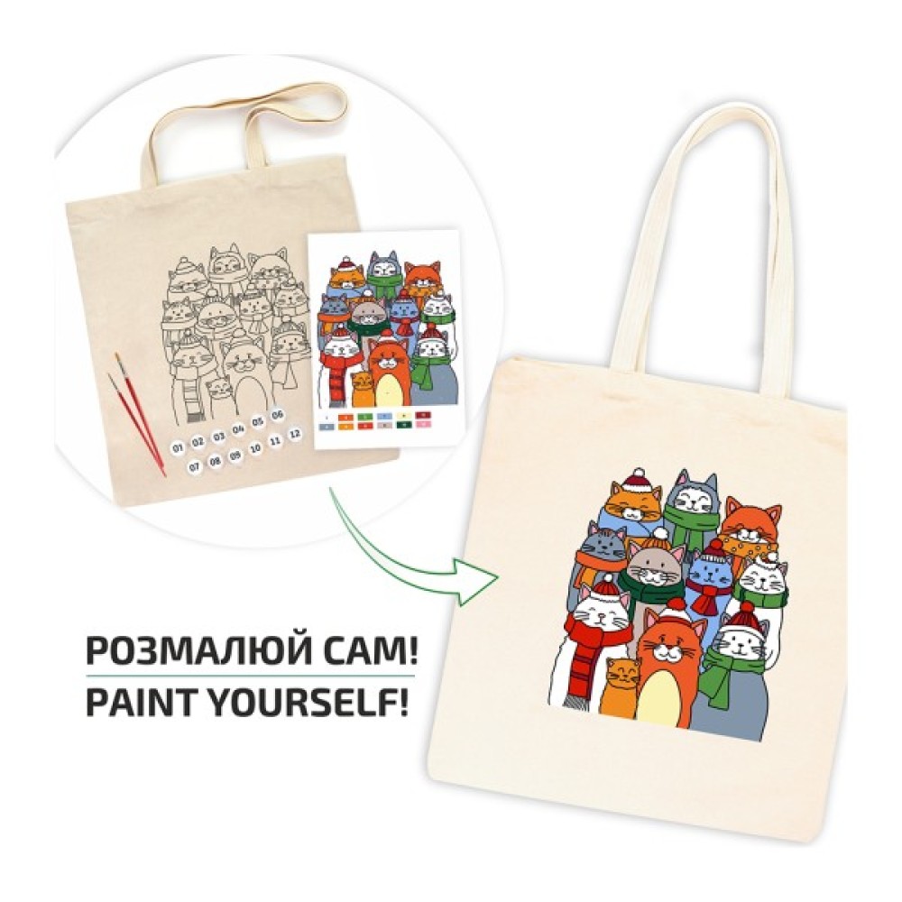 Talent екосумка-розмальовка, Коти в шапках, 38х42