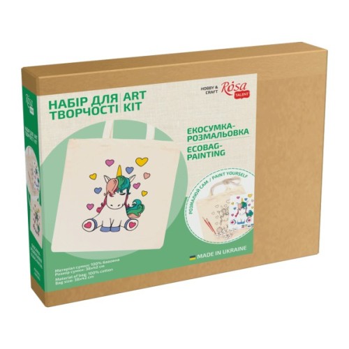Екосумка ROSA Talent– виготовлена зі 100% бавовняної тканини. Щільний якісний матеріал та надійна фіксація ручок дозволяє витримувати навантаження вагою до 15 кг. Розпис екосумки ROSA Talent - надзвичайно захоплюючий та водночас легкий процес, адже контури малюнку вже нанесені на основу. Розписана власноруч сумка стане яскравим стильним та практичним аксесуаром, що доповнить щоденний образ!