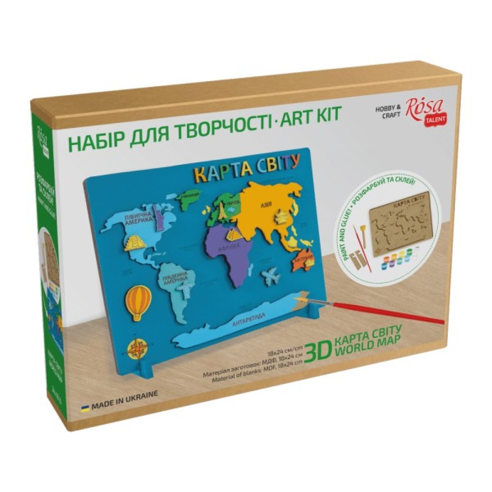 Набір, творчості, Rosa, Talent, Карта, світу, 3D, МДФ, 245, х, 185, см, 4823098540021