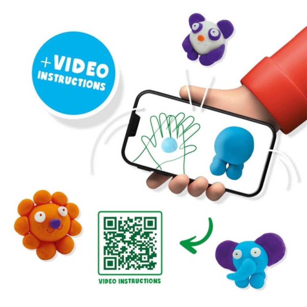 Відскануйте Qr-код з інструкції й відкривайте відео, за яким ви зможете поетапно зліпити милих тваринок: панду, лева й слоника. Якщо залишиться ще трохи маси, то можна зробити й інших тваринок. Фантазуйте!