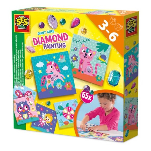Набір для творчості SES Creative Гігантські кристали з алмазною мозаїкою - це чарівна аплікація з великими блискучими камінчиками, що перетворює творчий процес на справжнє сяюче диво. Діти прикрашають ілюстровані картки стразами, що самоклеяться, створюючи яскраві картини, які можна подарувати або залишити як прикрасу.