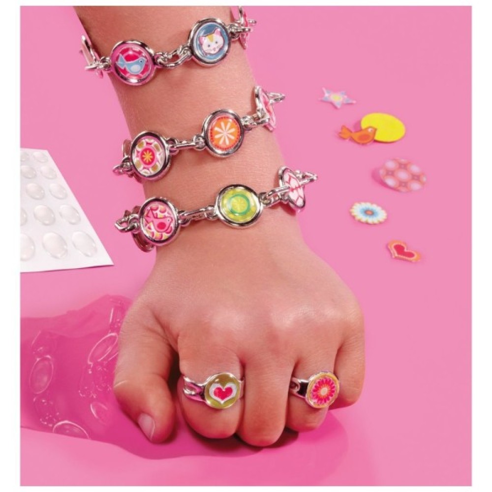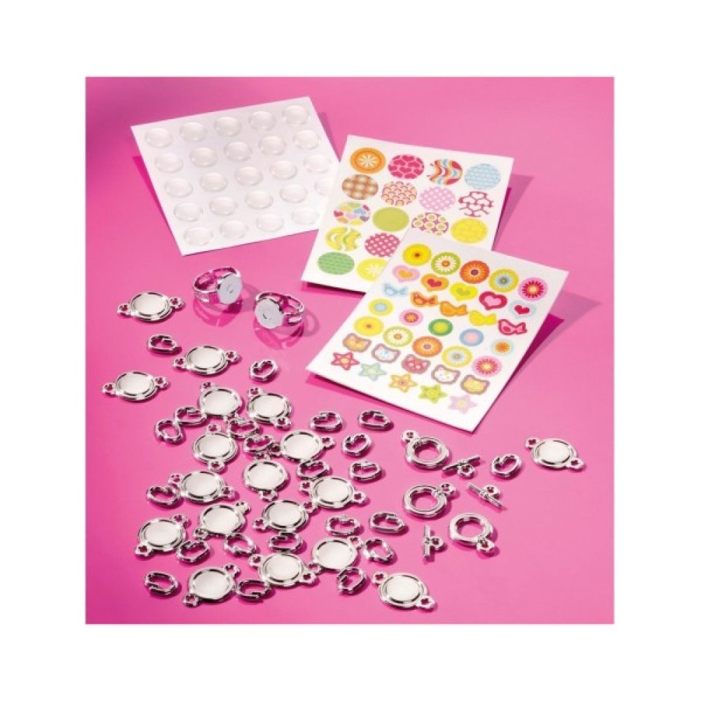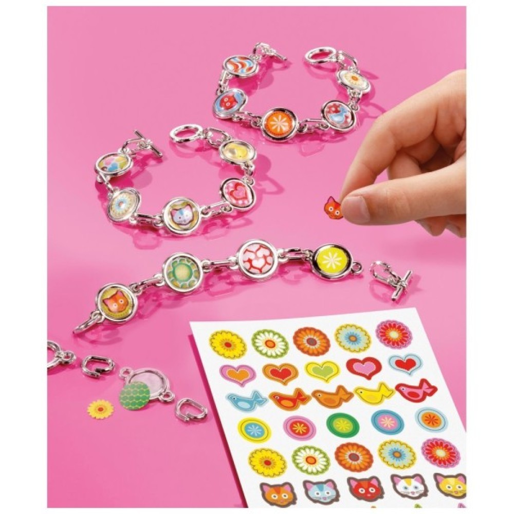 У наборі: деталі для 3 ланцюгових браслетів, 2 кільця, аркуш з прозорими глянцевими наклейками, 2 аркуші з кольоровими наклейками, інструкції.