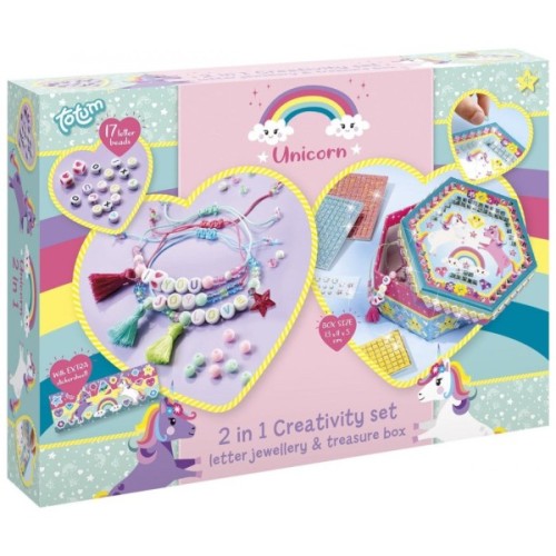 Набір для творчості Totum Єдиноріг 2 в 1 сподобається кожній маленькій модниці. Любиш підбирати прикраси до вбрання? Намисто, браслети, пояси та брошки. А як щодо створення прикрас власноруч? За допомогою набору ти зможеш зробити браслети собі чи подарунок! Щоб зберігати коштовності, знадобиться невелика скринька. Прикрась коробочку наклейками – нехай для неї знайдеться місце у твоїй кімнаті.