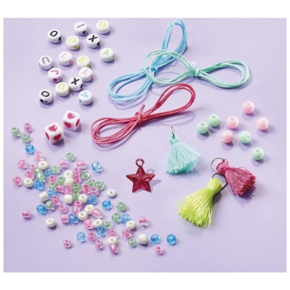 Комплектація коробочка-скринька, наклейки для оздоблення, намистини з літерами, блискучі намистини, пензлі, наклейки з єдинорогами