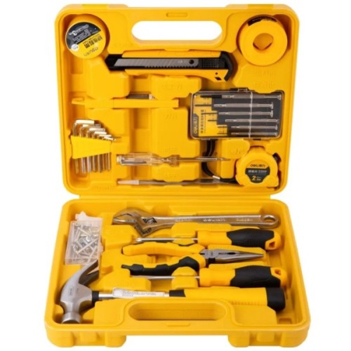 Комплектація набору викрутки; шестигранні/зіркоподібні ключі; молоток; розвідний ключ; рулетка; ніж; знімач ізоляції; довгогубці