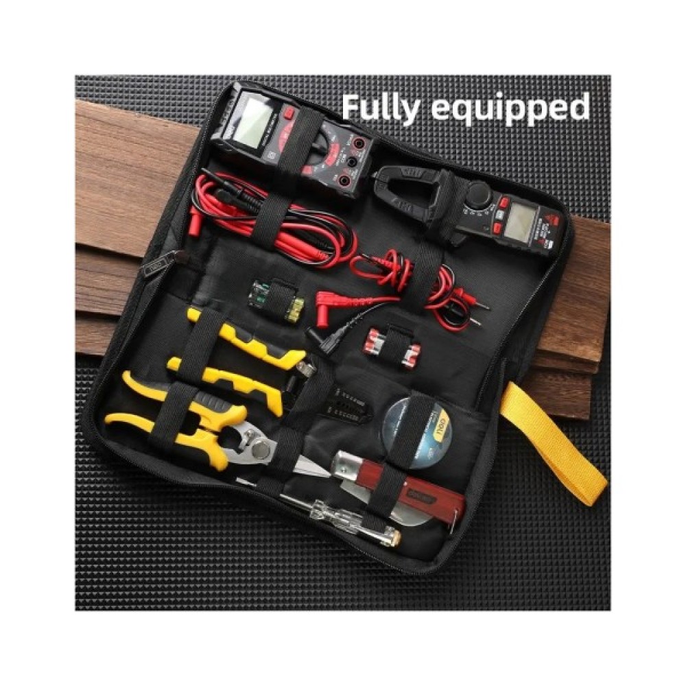 Набір доповнюється міцною ізоляційною стрічкою для захисних робіт, що підвищує безпеку під час маніпуляцій з проводкою. Всі інструменти акуратно упаковані в зручну тканинну сумку, що робить цей комплект ідеальним для мобільної роботи, надаючи можливість завжди мати потрібні інструменти під рукою.