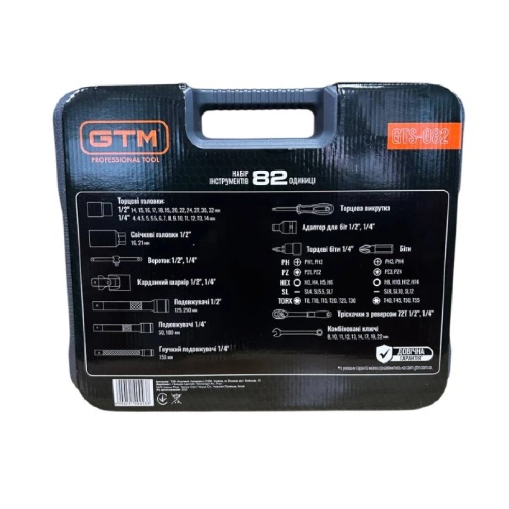 Набір інструментів GTM 82шт. 1/2-1/4" 4-32мм, кейс (GTS-082)