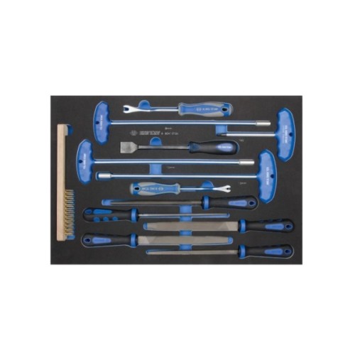 У наборі 13 інструментів, серед яких ви знайдете: щітку для чистки деталей, монтувальний пристрій, напилок для корекцій, знімач кліпс для легкого демонтажу та торцевий ключ для надійного затягування. Всі інструменти виготовлені з високоякісних матеріалів, забезпечуючи довговічність та надійність.