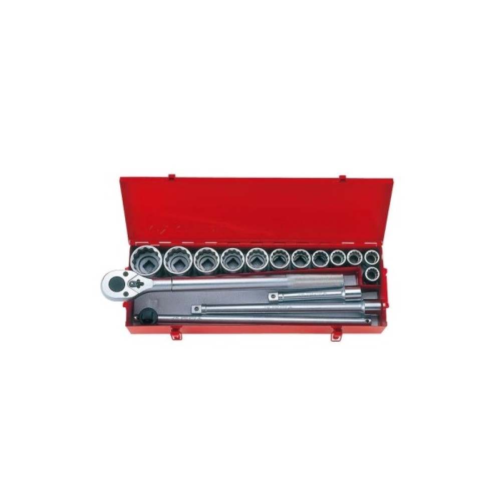 Особливістю цього набору є його дюймова розмірність торцевих головок, що дозволяє точно підібрати інструмент до потрібного розміру. Всього в комплекті є 12 торцевих головок з розмірами від 7/8" до 2", що дозволяє охопити значний спектр робочих задач. Серед цих розмірів ви знайдете такі варіанти: 7/8", 15/16", 1-1/16", 1-1/8", 1-1/4", 1-3/8", 1-1/2", 1-5/8", 1-3/4", 1-7/8" та 2".