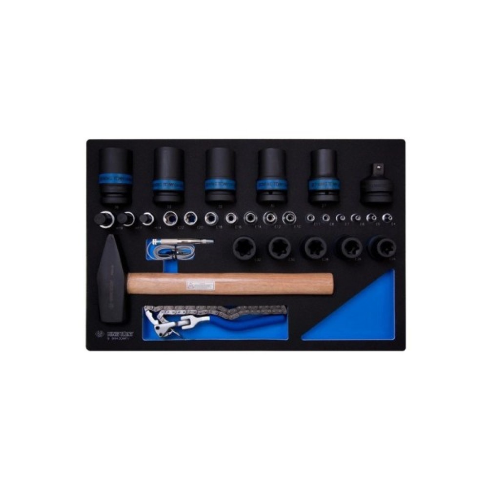 Весь набір виконаний з високоякісних матеріалів, що гарантує довгий термін служби та стійкість до зносу, навіть при інтенсивному використанні. KING TONY – це ваш надійний партнер у технічному обслуговуванні автомобілів, який дозволить швидко і без зайвих зусиль розв'язати будь-які завдання. Інвестуйте в інструменти преміум-класу та насолоджуйтесь процесом роботи, впевнившись у їх бездоганній якості!