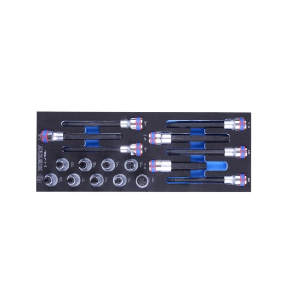 Торцеві головки, яких у наборі 88 штук, мають метричну розмірність і доступні у стандартному та подовженому варіанті, що забезпечує гнучкість під час роботи. Робочий профіль представлений у формі SPLINE, E-профілю, а також вставками SL, Hex, T для покращеного зчеплення. Це гарантує легкість у виборі та заміні інструментів в залежності від особливостей завдання.