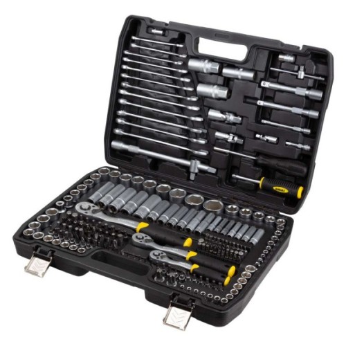 Ви отримаєте не просто набір, а повну колекцію з 216 інструментів, яка включає в себе біти, шестигранні та зіркоподібні ключі, універсальні інструменти для роботи з торцевими головками, такі як кардан шарнірний, гайкові ключі, вороток, подовжувач, тріскачка, а також тримач для біт.