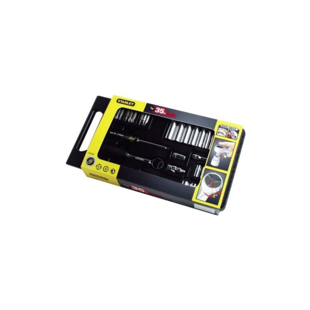 Набір інструментів Stanley торцевих 1/4", 35 шт. (1-87-010) – це ідеальний супутник для будь-якого любителя чи професіонала в галузі автомобільного обслуговування. Цей комплект від всесвітньо відомого бренду Stanley містить 35 високоякісних елементів, в тому числі торцеві головки, тріскачку, подовжувачі, а також різноманітні біти, що робить його універсальним рішенням для різних завдань.