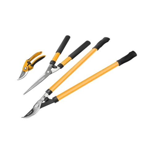 Набір садових інструментів Tolsen — ваш надійний партнер для догляду за садом, що включає гілкоріз, ножиці та секатор. Гілкоріз довжиною 710 мм відрізняється загартованими сталевими лезами з антипригарним покриттям для легкого обрізання товстих гілок. Комфортні прогумовані ручки забезпечують зручність навіть при тривалих роботах.