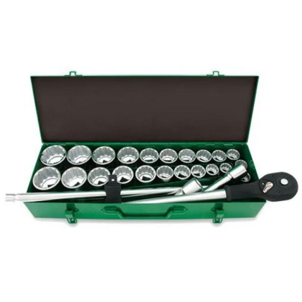 Торцеві головки – це невід'ємна частина цього комплекту, представлена у кількості 23 штук. Вони відрізняються двенадцатигранною формою робочого профілю, яка забезпечує бездоганне захоплення та мінімізує ризик зриву під час роботи. Розмірність торцевих головок представлена як у дюймовій, так і в метричній системах, що робить цей набір напрочуд універсальним. Стандартна довжина торцевих головок забезпечує комфортний доступ до важкодоступних місць.