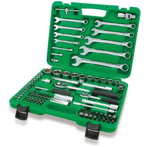 Toptul відзначається своєю високою якістю виготовлення, що підтверджується добірними матеріалами та сучасними технологіями виробництва. З цим набором ви отримуєте 82 різноманітних інструменти, які допоможуть в обслуговуванні автомобіля. До комплектації входять торцеві головки, гайкові ключі, біти, тримач для біт, тріскачка, подовжувачі, гнучкий подовжувач, вороток та кардан шарнірний, що надає цьому набору універсальності.