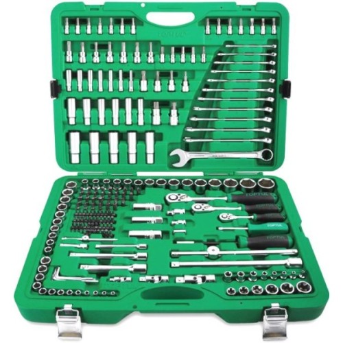 Усі інструменти зручно розміщені у валізі, що полегшує їхнє транспортування та зберігання. Це не тільки додає естетики та практичності, але й забезпечує упорядкованість та легкий доступ до кожного елемента. Набір Toptul славиться своєю надійністю та довговічністю, тому він стане цінним помічником у вашому арсеналі інструментів на довгі роки.