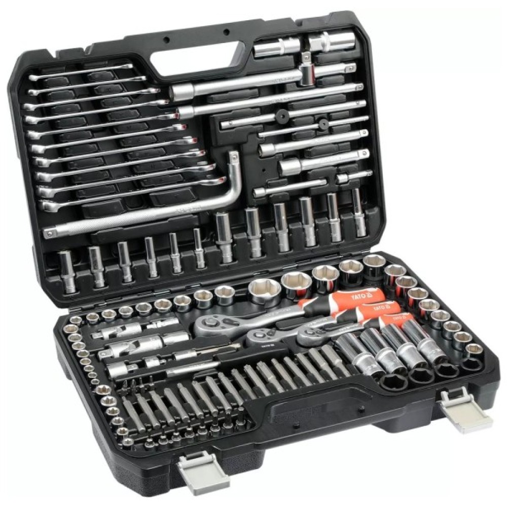Набір інструментів Yato YT-38872 — це бездоганний вибір для автолюбителів та професіоналів, які прагнуть мати у своєму арсеналі якісні та універсальні інструменти. Комплектація набору складається з 128 компонентів, спеціально відібраних для широкого спектру завдань — від простих домашніх ремонтів до складних технічних робіт на СТО або в автомайстерні. Він забезпечує всебічну підтримку у вирішенні кожного виклику, з яким ви стикаєтеся.