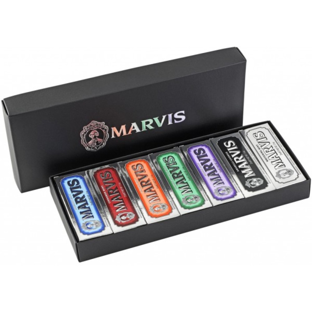Легендарний італійський бренд Marvis спеціалізується на виготовленні преміальних зубних паст і засобів для догляду за ротовою порожниною. Цей набір складається з колекції 7 зубних паст. Він буде прекрасним подарунком будь-якому гурману. Вибухові смаки, які врізноманітнять рутину для догляду за ротовою порожниною.