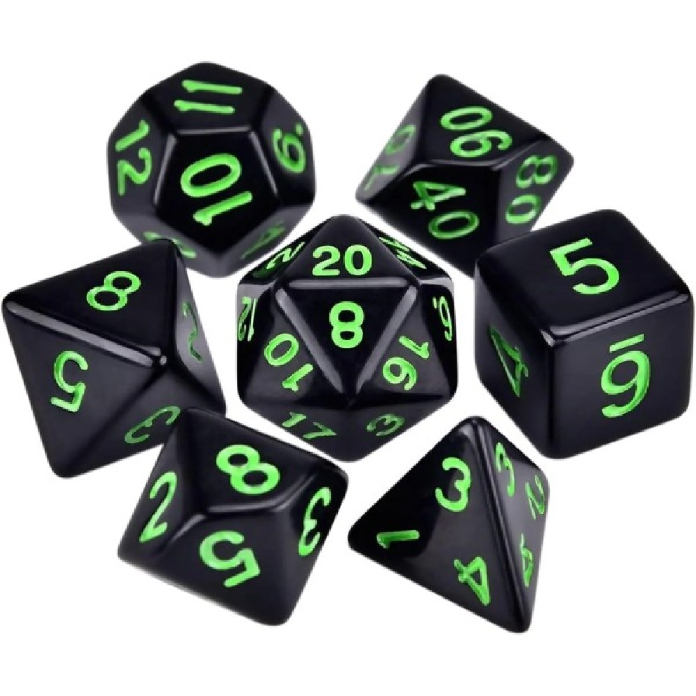 Модель: Opaque 7 Dice Set - Black (w-green)