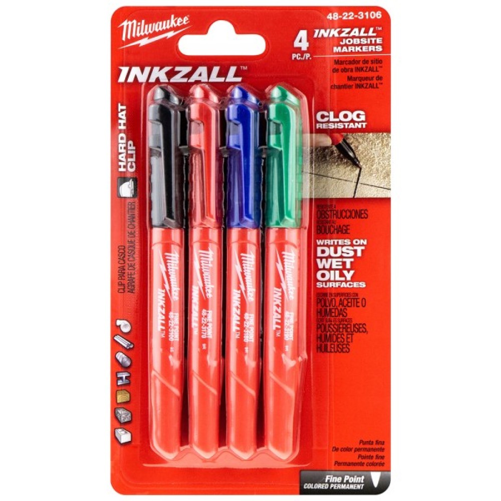 Набір маркерів Milwaukee INKZALL ультра-тонких, синій, червоний, зелений, чорний, 4шт (48223106)