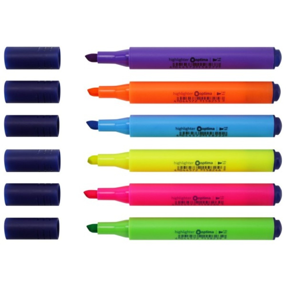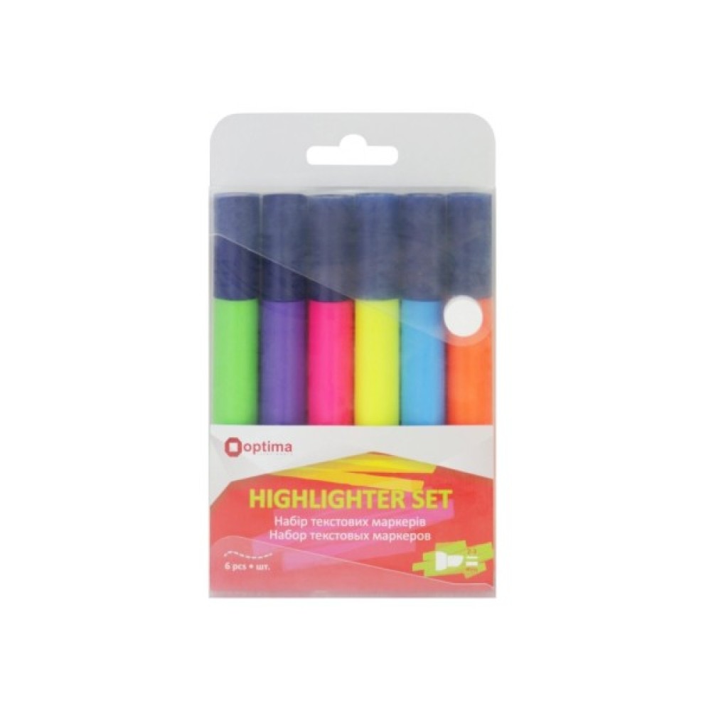 Набір маркерів для виділення тексту; 6 кольорів; соковиті кольори відразу привертають увагу до виділеного уривку; універсальні чорнила на водній основі підходять для всіх видів паперу, в т.ч. ксерокопіям та факсам; трикутна форма корпусу зручно тримається в руці; пишучий вузол зроблено із надміцного матеріалу, який унеможливлює деформацію; колір ковпачка відповідає кольору чорнила; зроблено в Україні.