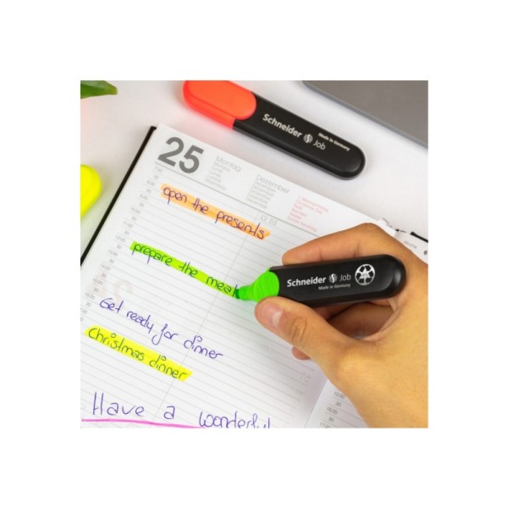 Яскравий та неповторний; один з найпополярніших текстовиділювачів в Україні; стильний дизайн корпусу; клиноподібний пишучий вузол; товщина лінії 1-4,5 мм; підходить для всіх видів паперу; насичені флюорисцентні кольори; унікальна система CAP-OFF-INK дозволяє до 14 днів тримати маркер без ковпачка; максимальний розмір та наповнення резервуару для чорнил; зроблено в Німеччині.