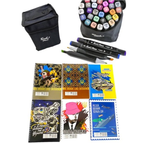 Набір маркерів Touch двосторонніх скетч маркерів 36 шт в чохлі + блокнот А5 (40 арк) в асортименті для хлопчиків (XK-MRK-BOY)