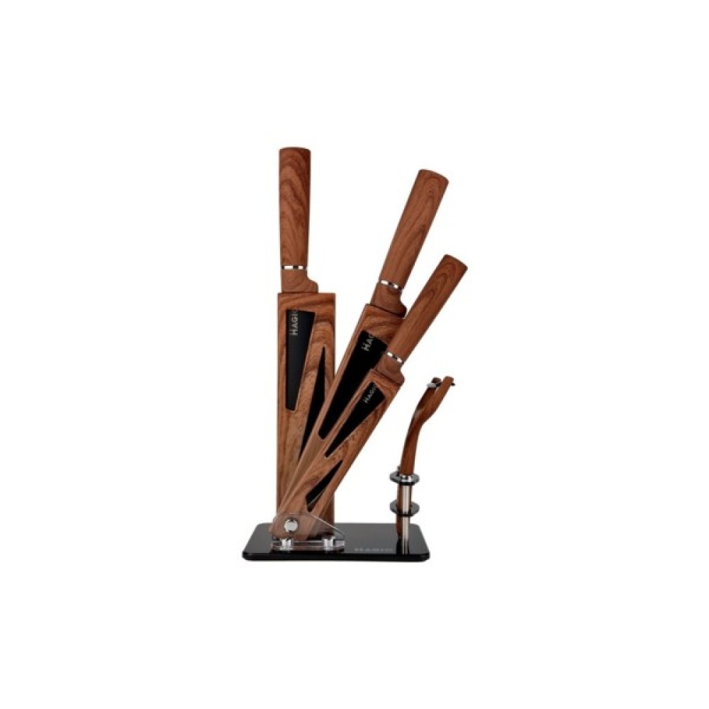 Набір ножів Magio MG-1095 5 предметів коричневий - створений за найсучаснішими та модними технологіями та тенденціями. Набір кухонних ножів стане прикрасою на Вашій кухні та додасть неповторності Вашому інтер'єру.
