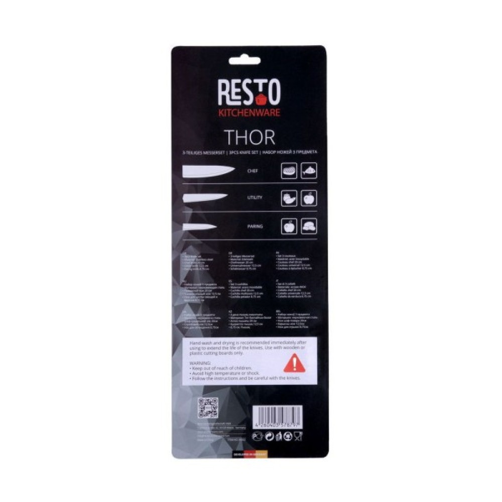 Набір ножів Resto Thor 3 предмети (95502) також має привабливий зовнішній вигляд, що додає йому стильності і привабливості. Його дизайн розроблений з урахуванням естетичних аспектів, що робить його прекрасним доповненням до будь-якого простору.
