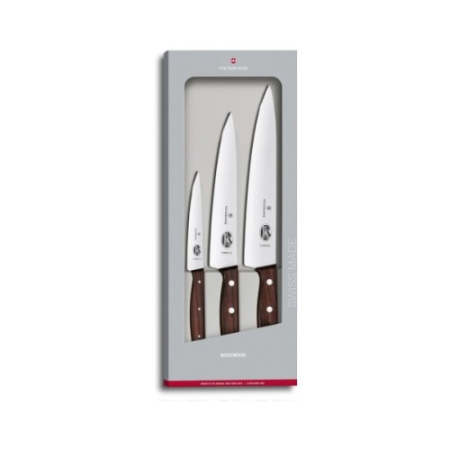 Практичний кухонний набір Victorinox Wood Carving Set 5.1050.3G – унікальна пропозиція із серії Rosewood. Набір кухонних ножів із цієї колекції поєднує гарну форму з високою функціональністю. Інструменти мають ідеальний баланс і елегантну дерев'яну рукоятку з правильними вигинами.