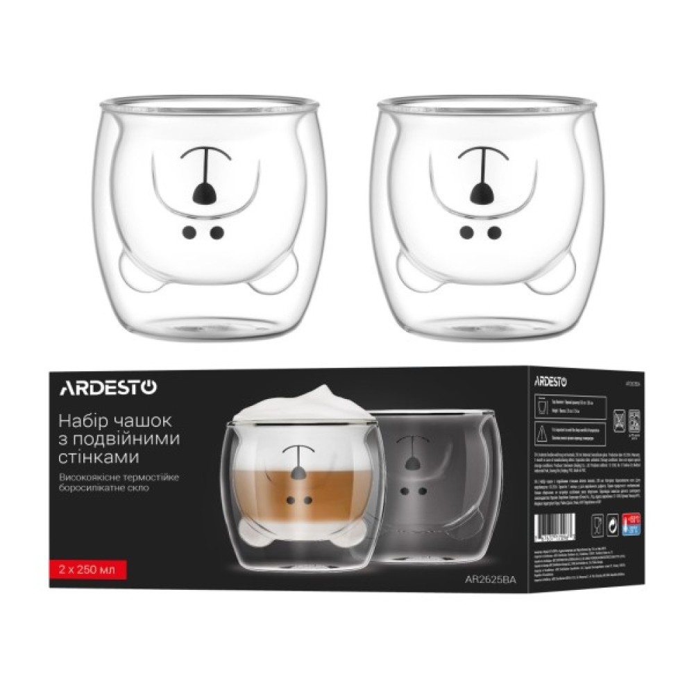 Набір, склянок, Ardesto, Animals, 250, мл, 2, шт, прозорий, AR2625BA