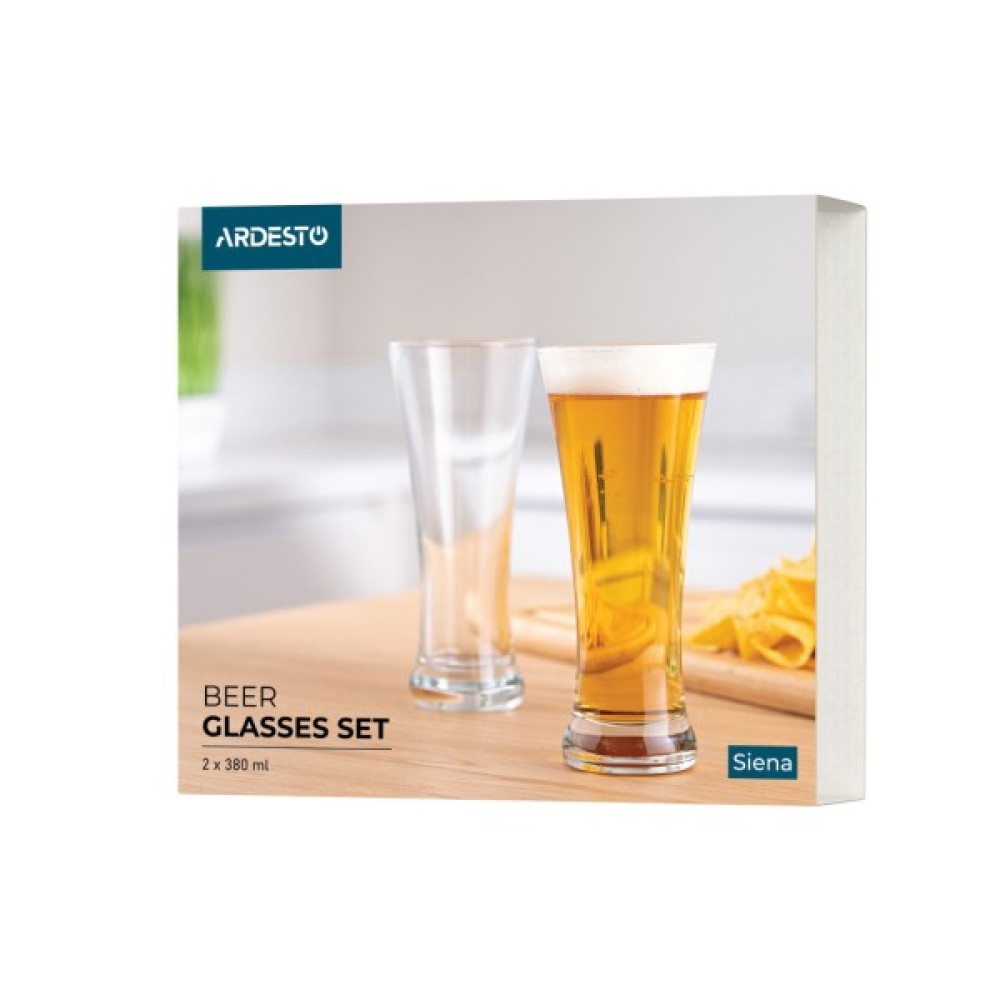 Завдяки формі кухлі для пива ARDESTO Siena піна зберігається довго. У них найкраще розкриваються та не втрачають своїх якостей смак та аромат світлих сортів пінного. У наборі два кухлі об’ємом 380 мл – запрошуйте друга й гарний вечір забезпечено.