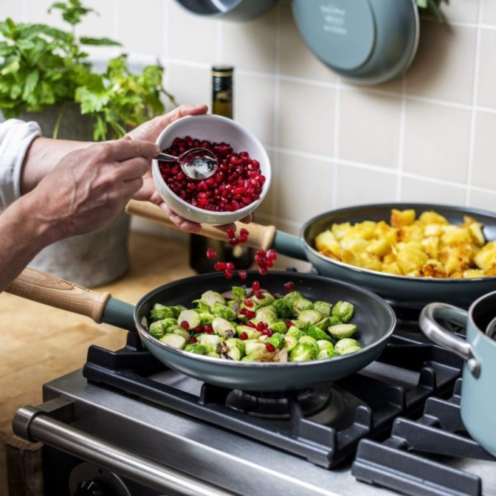 Додайте трохи кольору та дизайну у скандинавському стилі на свою кухню з набором із 3 сковорід GreenPan Mayflower. Набір з 3 предметів включає сковороди 24 см і 28 см і лопатку і виконаний у чудовому скандинавському синьому кольорі з привабливими ручками, що не нагріваються. Товсті ковані основи Magneto забезпечують швидкий та рівномірний розподіл тепла та підходять для використання на всіх типах плит, включаючи індукційні. Виготовлені з високоякісного алюмінію, всі сковороди GreenPan мають керамічне антипригарне покриття Thermolon, покращене алмазами і ПФАС, що повністю не містить.