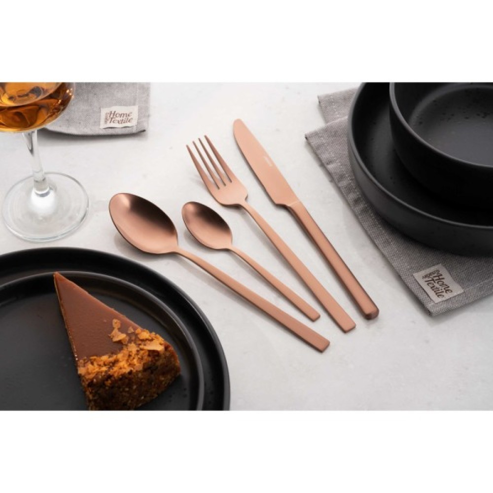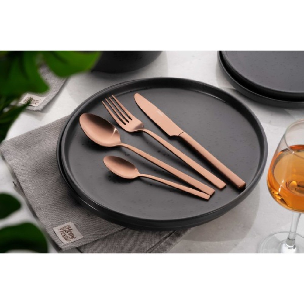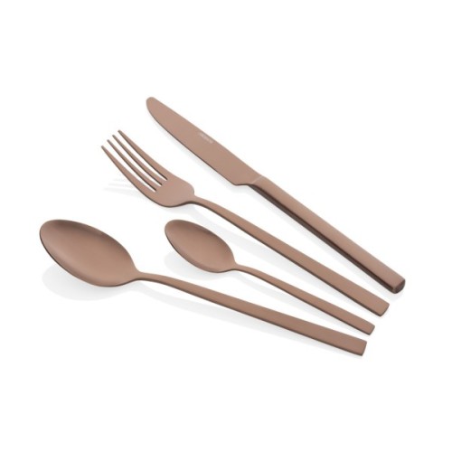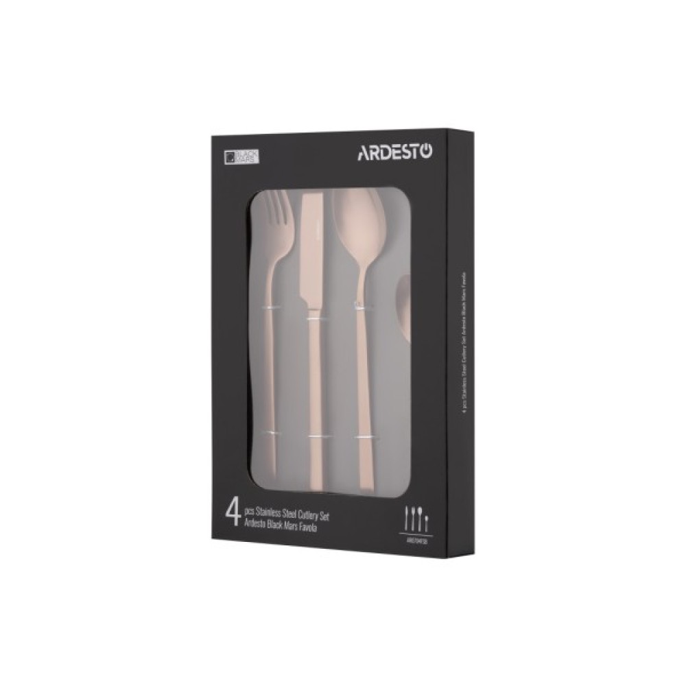 Столові прибори ARDESTO Black Mars Favola золотавого матового кольору – важливі елементи сервірування столу як за щоденного використання, так і для свят. Набір складається з чотирьох предметів: столової ложки; столової виделки; столового ножа; чайної ложки. Зручні вироби виготовлено з нержавіючої сталі, яка вирізняється міцністю, гігієнічністю та стійкістю до корозії. Мають елегантний дизайн і ергономічну форму. Вироби прості в догляді – можна мити в посудомийній машині.