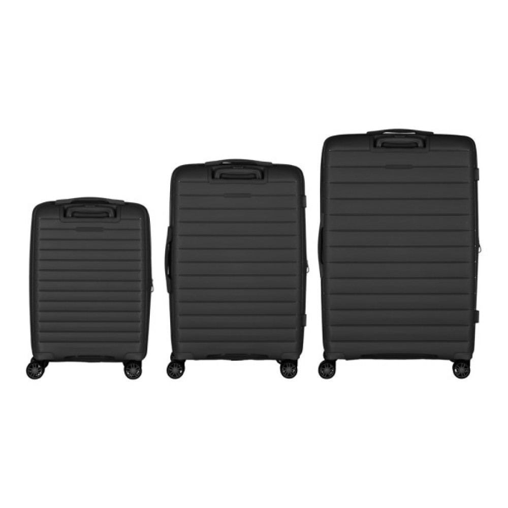Жорсткий корпус виготовлено зі 100% поліпропілену, що забезпечує надзвичайну міцність за мінімальної ваги. Усередині валіз передбачено розділювачі та регульовані пакувальні паски для надійної фіксації речей, це організовує і впорядковує поклажу, і в такий спосіб забезпечується високий рівень комфорту та безпеки, що зробить подорож безтурботною.