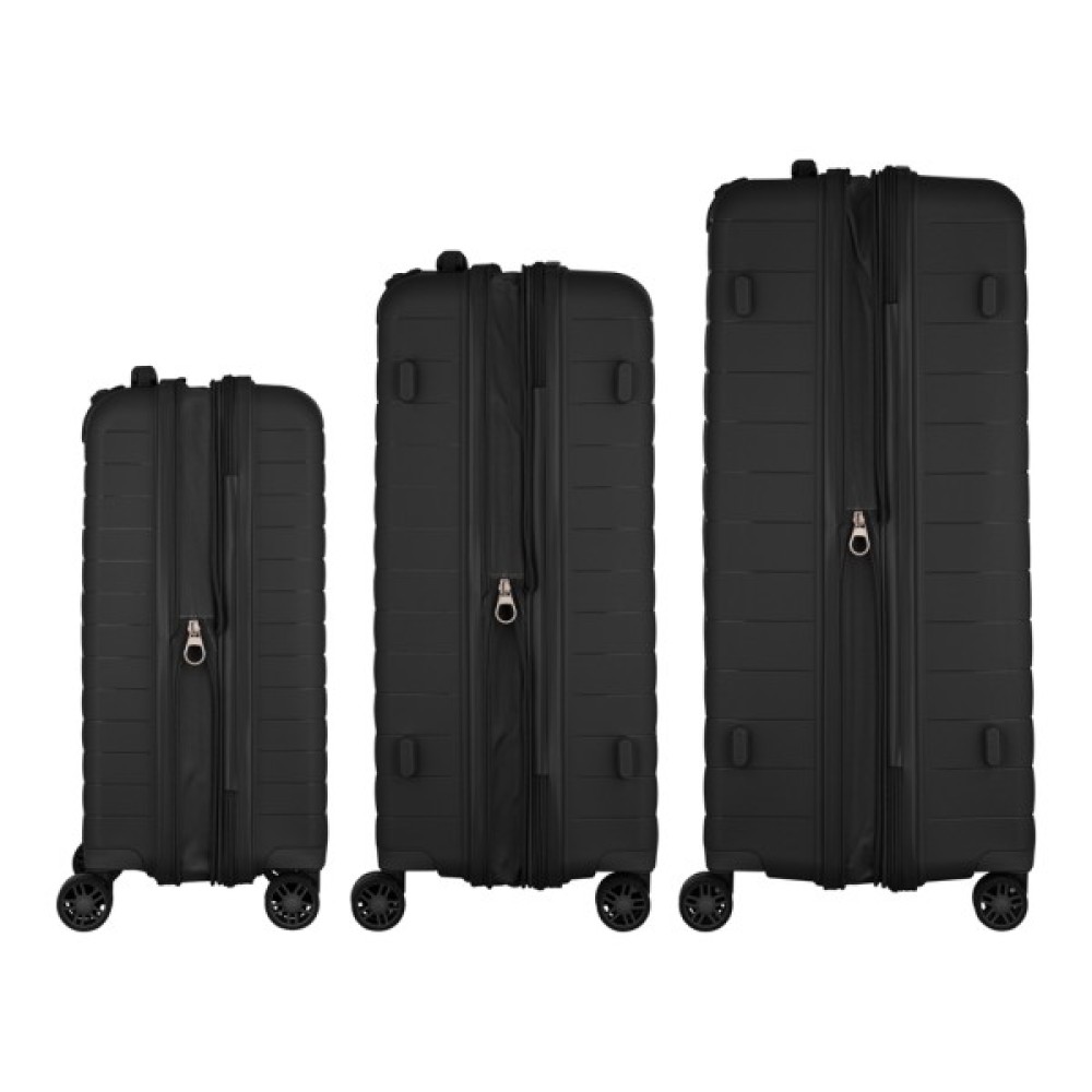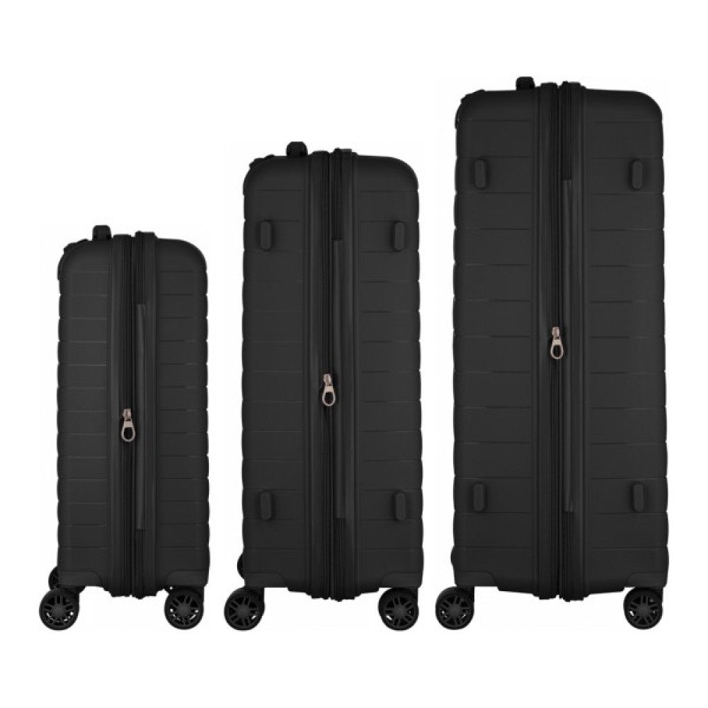 передбачено розділювачі та регульовані пакувальні паски всередині; можливість розширення (збільшення об'єму); подвійні колеса