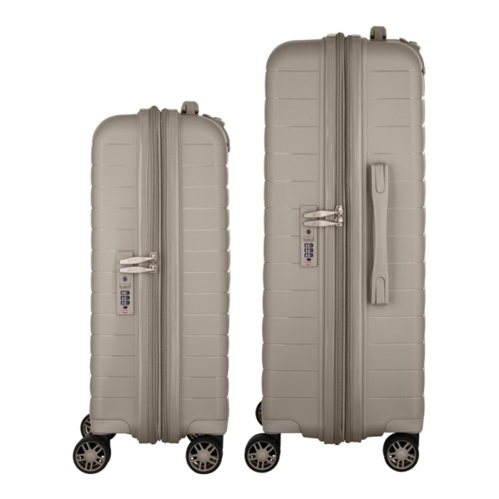Жорсткий корпус виготовлено зі 100% поліпропілену, що забезпечує надзвичайну міцність за мінімальної ваги. Усередині валіз передбачено розділювачі та регульовані пакувальні паски для надійної фіксації речей, це організовує і впорядковує поклажу, і в такий спосіб забезпечується високий рівень комфорту та безпеки, що зробить подорож безтурботною.