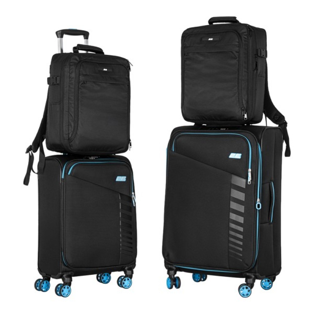 Доповнюють валізи два рюкзаки 2E Cabin Size (код товару: 2E-BPET-CABIN-BK), які вироблено з поліестеру 300 × 600 D, стійкого до зношування і впливу вологи. Вони мають розмір 30 × 40 × 15(+5) см, вагу 0,75 кг і можливість збільшення об’єму з 17 до 23 л. Усередині передбачено відділення для ноутбука 15,6–16″ (38 × 28 × 3 см), що убезпечує техніку під час подорожей.