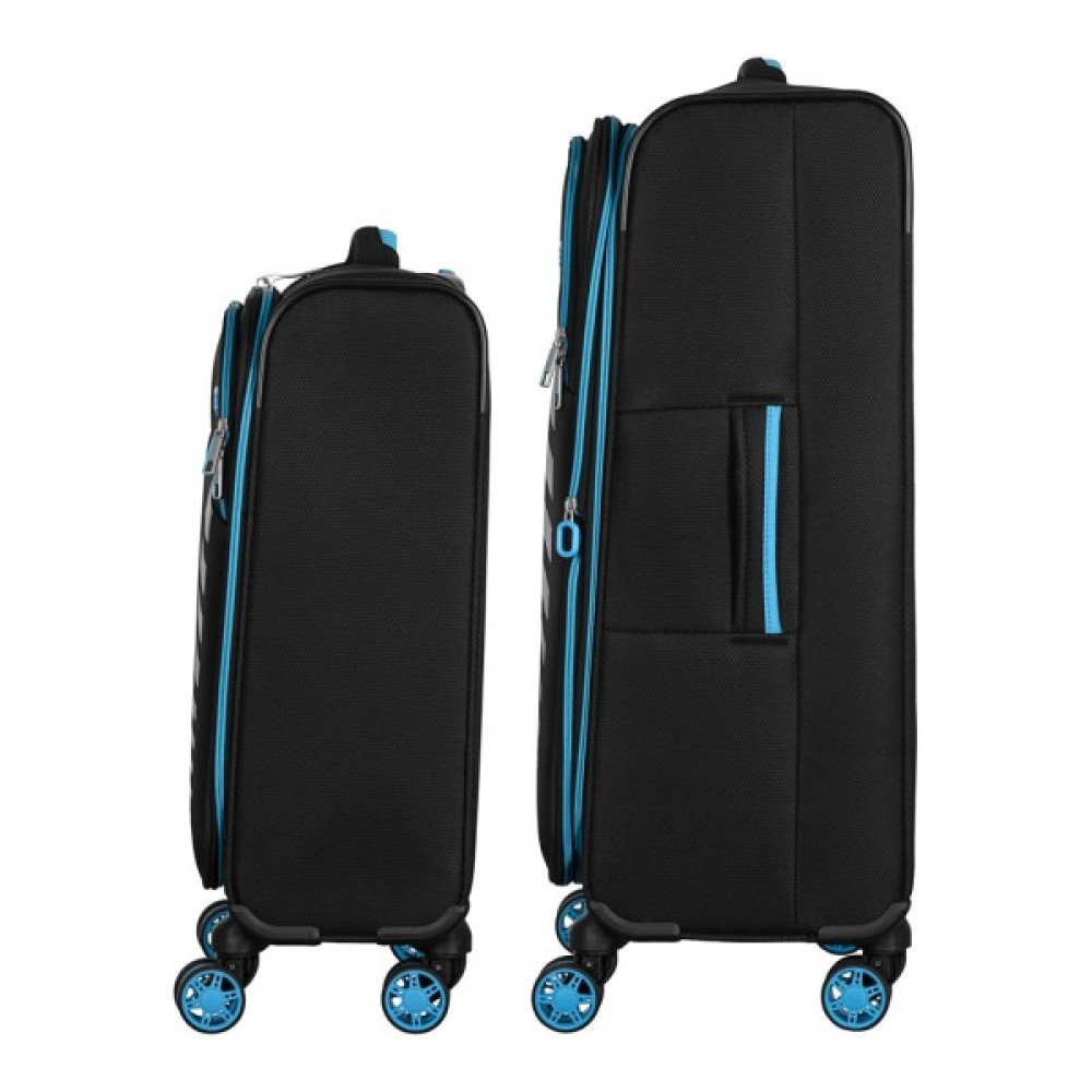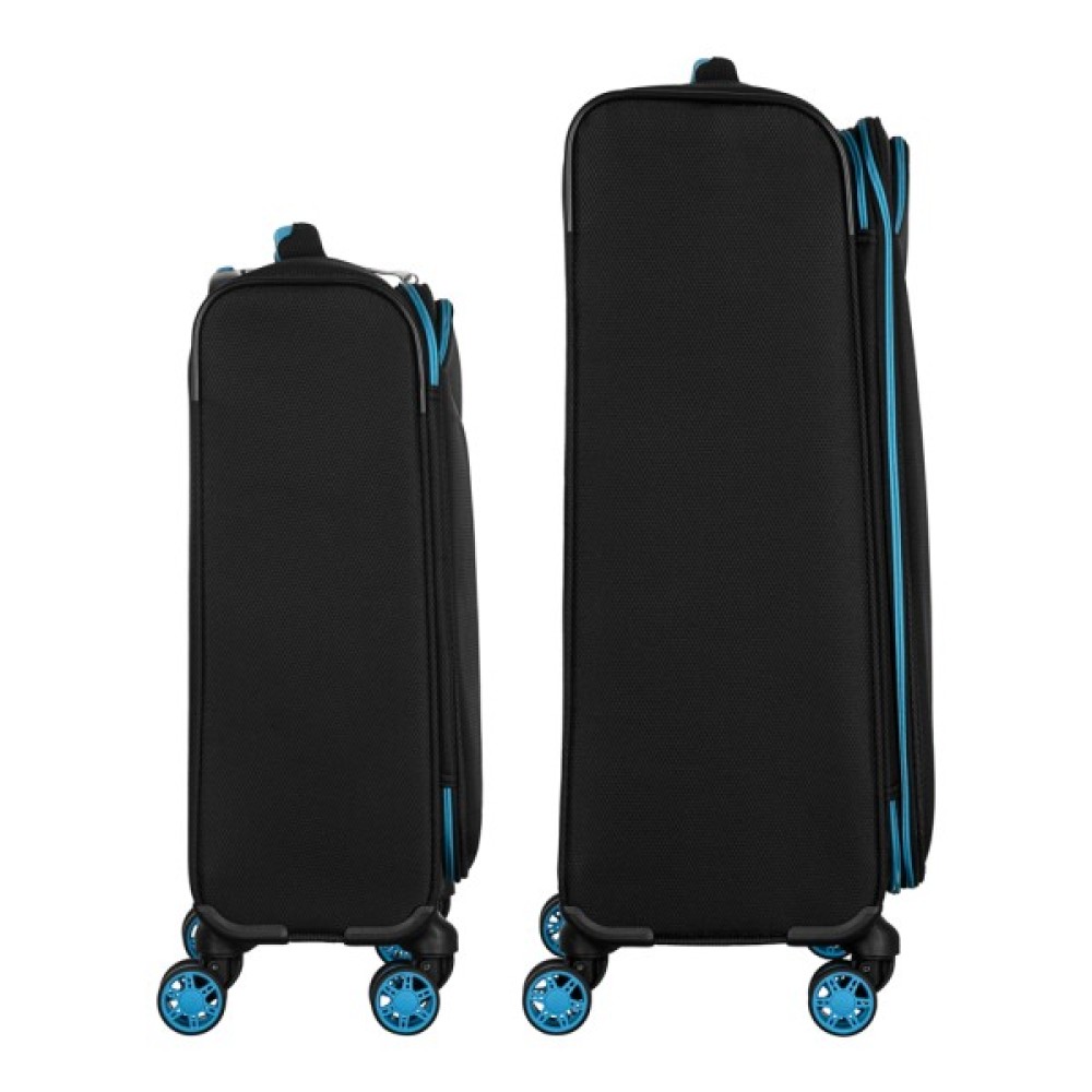 - Середня валіза (M) – 43 × 67 × 26/32 см, об’єм 64/78 л, вага 2,5 кг