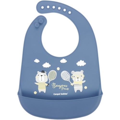 Нагрудничок, Canpol, babies, Bonjour, Paris, силіконовий, з, кишенькою, синій, 74027blu