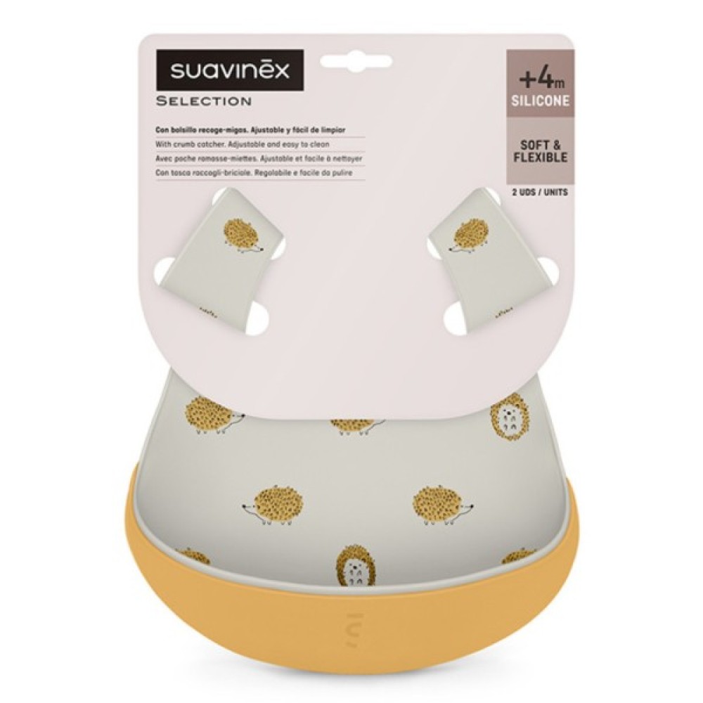 Набір силіконових нагрудників Suavinex Colour Essence - виготовлений повністю з м'якого силікону, легко чиститься, оснащений застібкою, що регулюється, і кишенею для крихт. Підходить для дітей віком від 4 місяців.