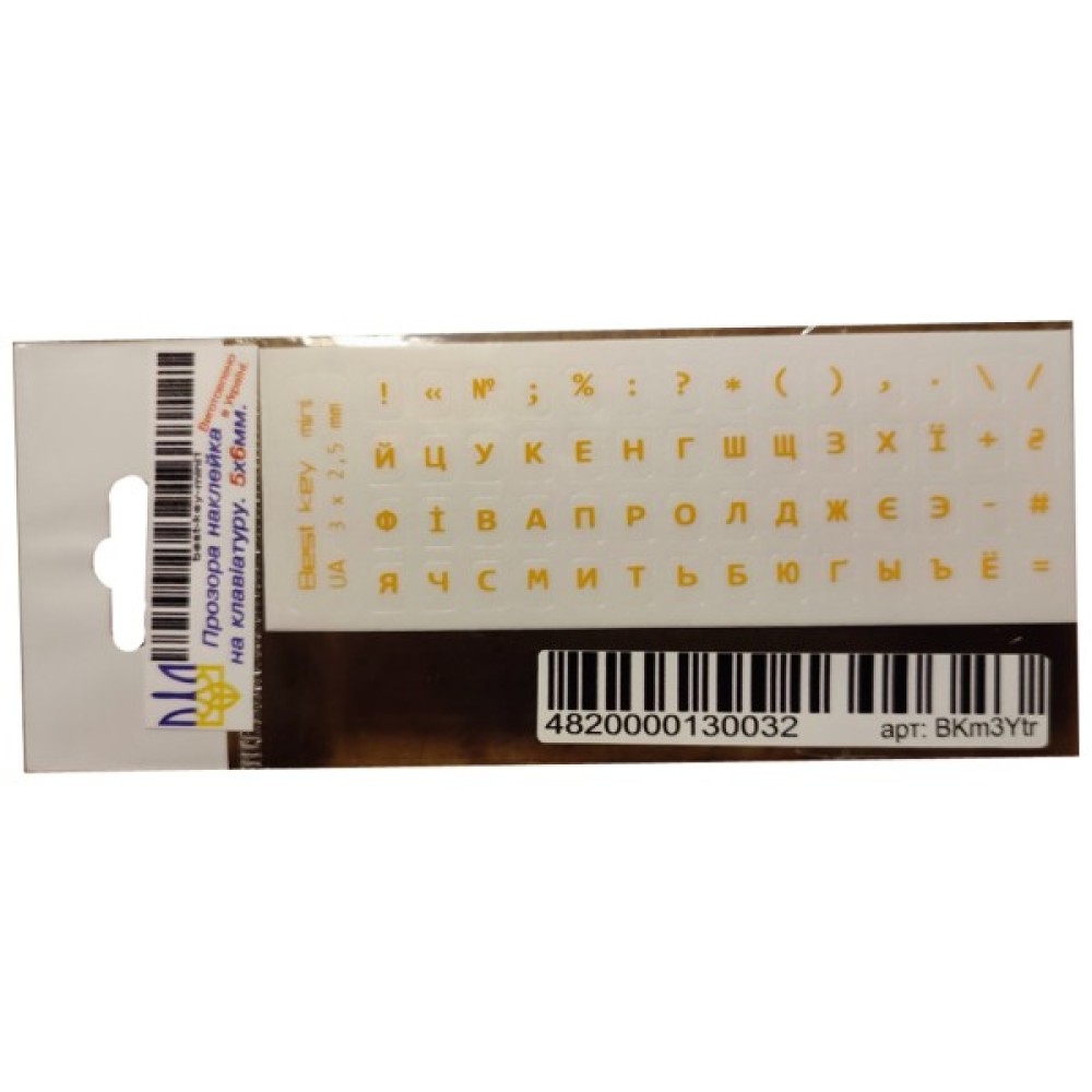 - Наклейка на клавіатуру універсальна прозора жовтими літерами.