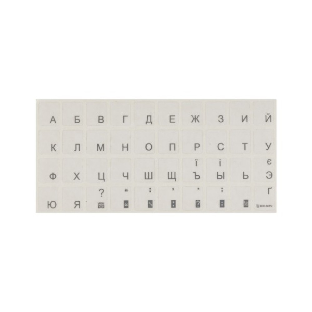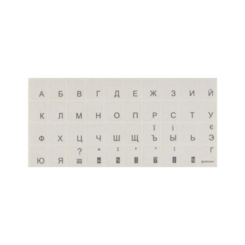 AIN silver добре кріпляться до поверхні клавіатури. При необхідності, наклейки на клавіатуру легко видаляються з поверхні і не залишають слідів. Не бояться вологого прибирання. Розкладка російсько-українська.
