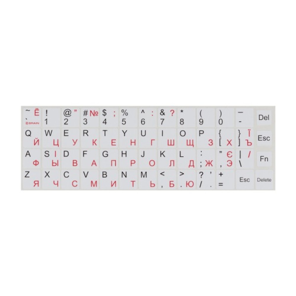 AIN white добре кріпляться до поверхні клавіатури. При необхідності, наклейки на клавіатуру легко видаляються з поверхні і не залишають слідів. Не бояться вологого прибирання. Розкладка: російська/українська/англійська.