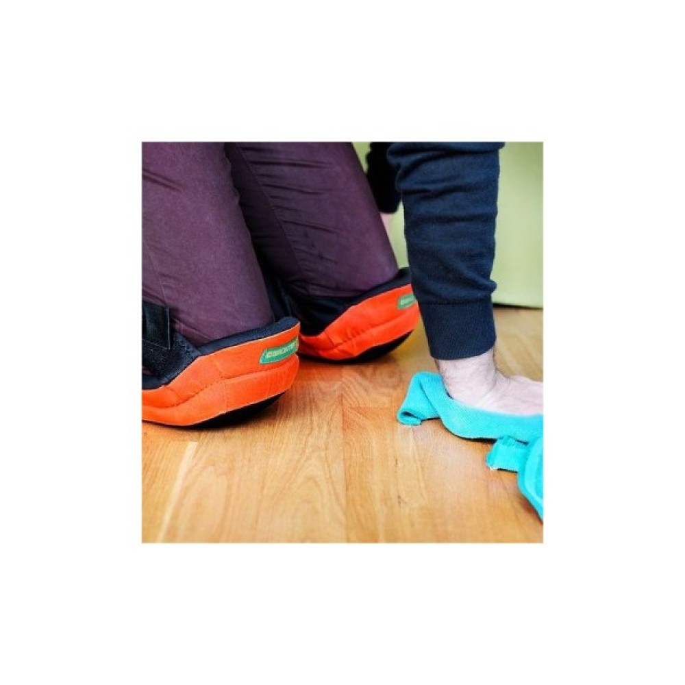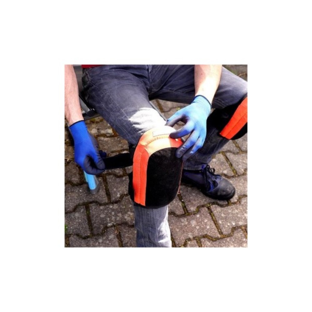 Наколінники виготовлені з поліестеру з чашею наповненою спіненої гумою, яка пом'якшує навантаження на коліна. М'яка основа дозволяє комфортно працювати, підлаштовується під форму коліна, не ковзає на плитці, паркеті, ламінаті. Для зручного носіння наколінники застібаються за допомогою 4-х лямок ззаду коліна.