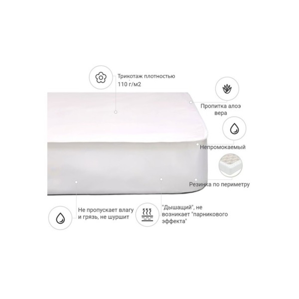 Наматрацник із просоченням алое вера. Як відомо, алое вера є рослиною-адаптогеном, що підвищує здатність людини адаптуватися до зовнішніх впливів і чинити опір стресам. Завдяки просоченню алое вера наматрацник має вентилювальні, антибактеріальні, зм'якшувальні, регенерувальні та заспокійливі властивості, що створить комфортні умови для вашого сну.