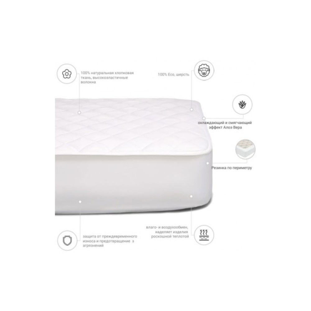 Завдяки просоченню алое вера наматрацник має вентилювальні, антибактеріальні, пом'якшувальні, регенерувальні та заспокійливі властивості, що створить комфортні умови для вашого сну.